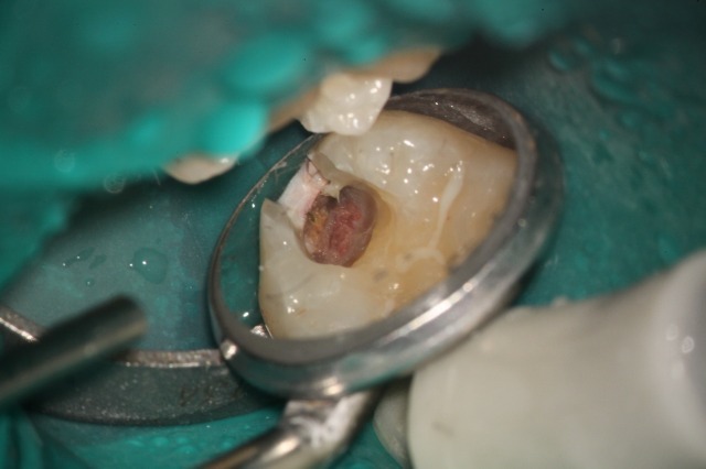 軟化象牙質が歯髄まで達している事も多く、うっかりすると簡単に歯髄が露出(=露髄)し、抜髄になります。